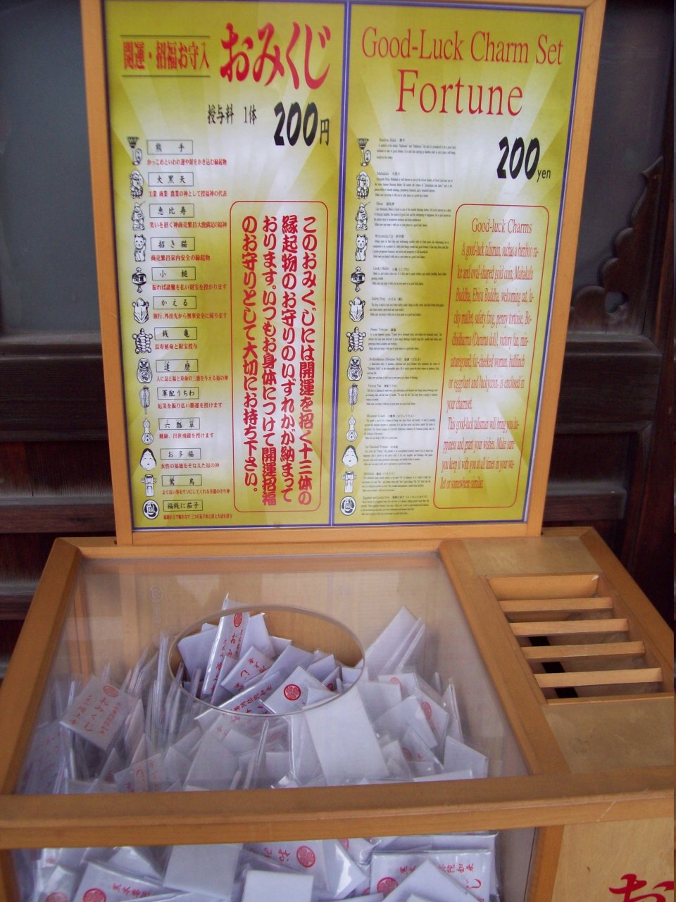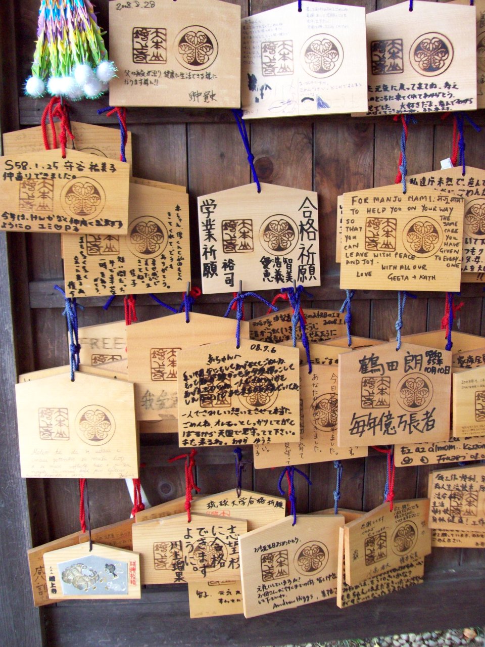 Alcuni messaggi sulle targhe di legno erano anche in inglese, ma la maggior parte, naturalmente, in giapponese.
