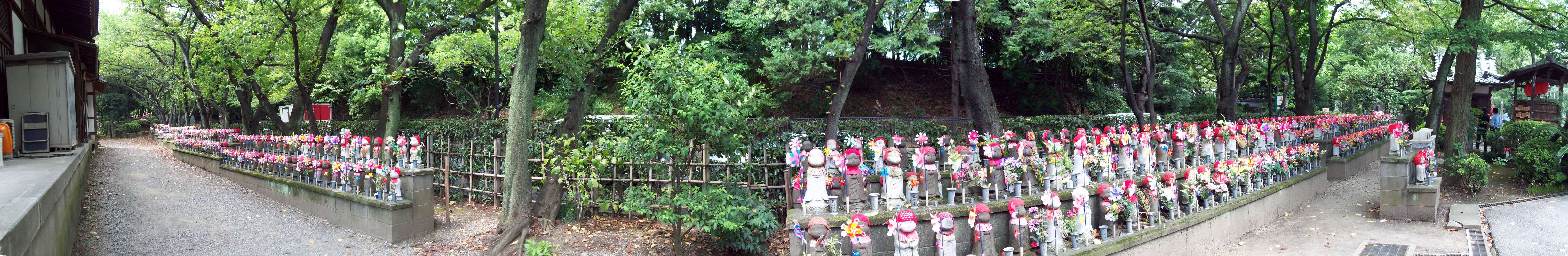 Qui sotto potete vedere una foto panoramica a 180° di centinaia di piccole statuine con delle girandole, che mi hanno lasciato impressionato già due anni fa, quando le avevo viste di notte da fuori del Tempio, di ritorno dalla visita alla Torre. Quest'anno ho deciso di fare una foto: