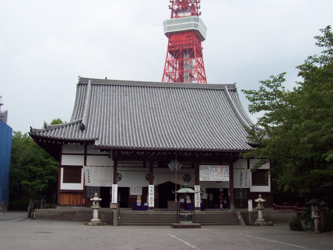 Purtroppo la parte principale del Tempio era in ristrutturazione proprio in quel periodo, quindi non si poteva ammirare la facciata, ma dalla foto potete vedere quanto sia vicino alla Torre di Tokyo, mentre nel sito ufficiale potete vedere la facciata com'è.